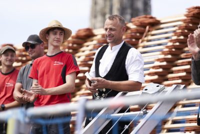 Baustellen-Blog: Richtfest für das neue Dach der ehemaligen Gewerbebank
