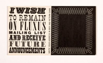 FLUXUS saw itself as a worldwide movement with the aim of creating new collective forms of life. Its founder George Maciunas (1931-1978) conceived and organized not only the artistic activities of the group, but was also editor and designer of numerous Fluxus editions.