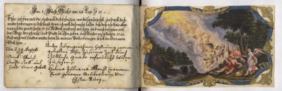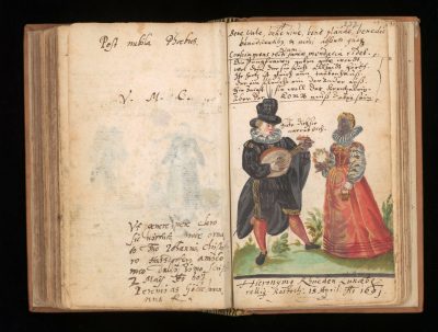 The small books were particularly popular with young men. During their studies, journeyman migration or educational journey, they collected handwritten entries from friends, professors, fellow students and new acquaintances. They wrote them poems, learned quotations or wisdom in their family books or reminded them of the fun student life with a crude saying. Those who had the necessary money commissioned a painter with a small illustration or painted something themselves: coats of arms, city views, allegories, beautiful women, couples in love or domestic scenes were popular.